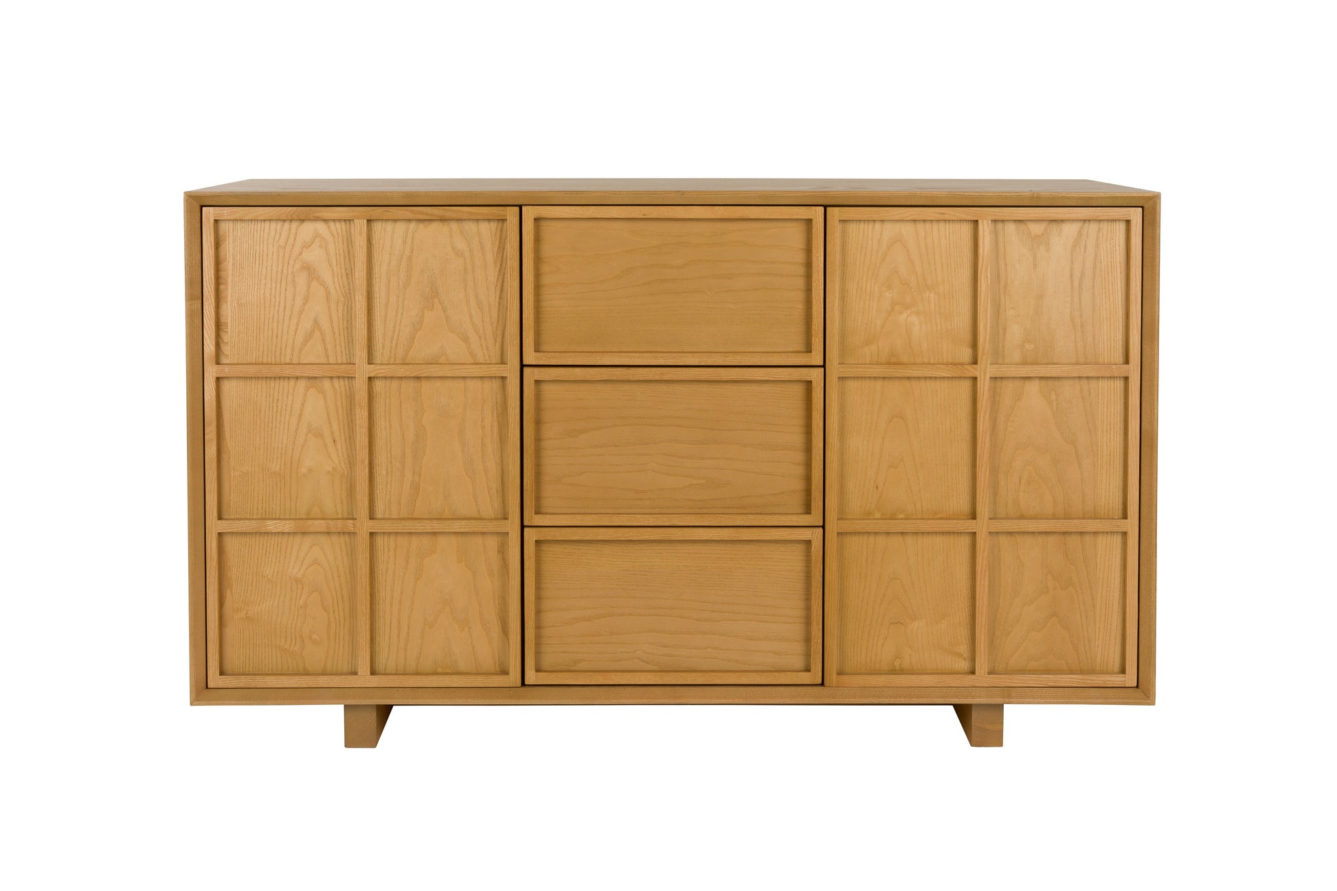 Ramybė ir harmonija – tai, kas apibūdina išskirtines „Raster“ serijos komodas. Pavadinimas nurodo medines lenteles, kurios stalčiuose ir durelėse sudaro rombo formos raštą, sukuriantį gražų šviesos ir šešėlio žaismą. Tiesios kojelės šiek tiek pakelia spintelę nuo grindų ir suteikia jai išvaizdą, primenančią japonišką meistrystę, derinamą su skandinavišku aiškumu. Nepakeičiamas elementas tvarkingam „Japandi“ interjerui.