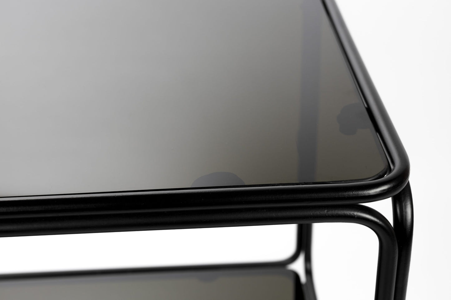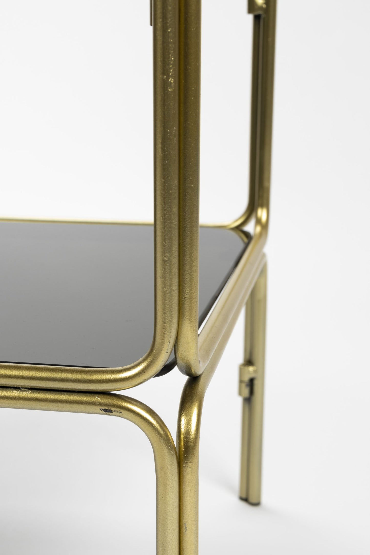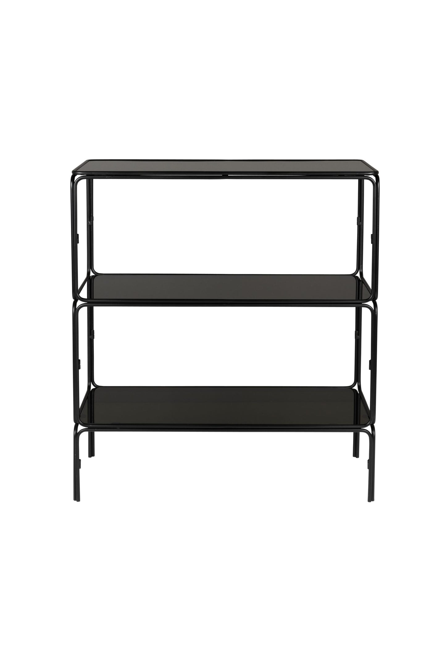 Milteliniu būdų dažytos geležinės kojalės su stiklinėmis lentynomis.