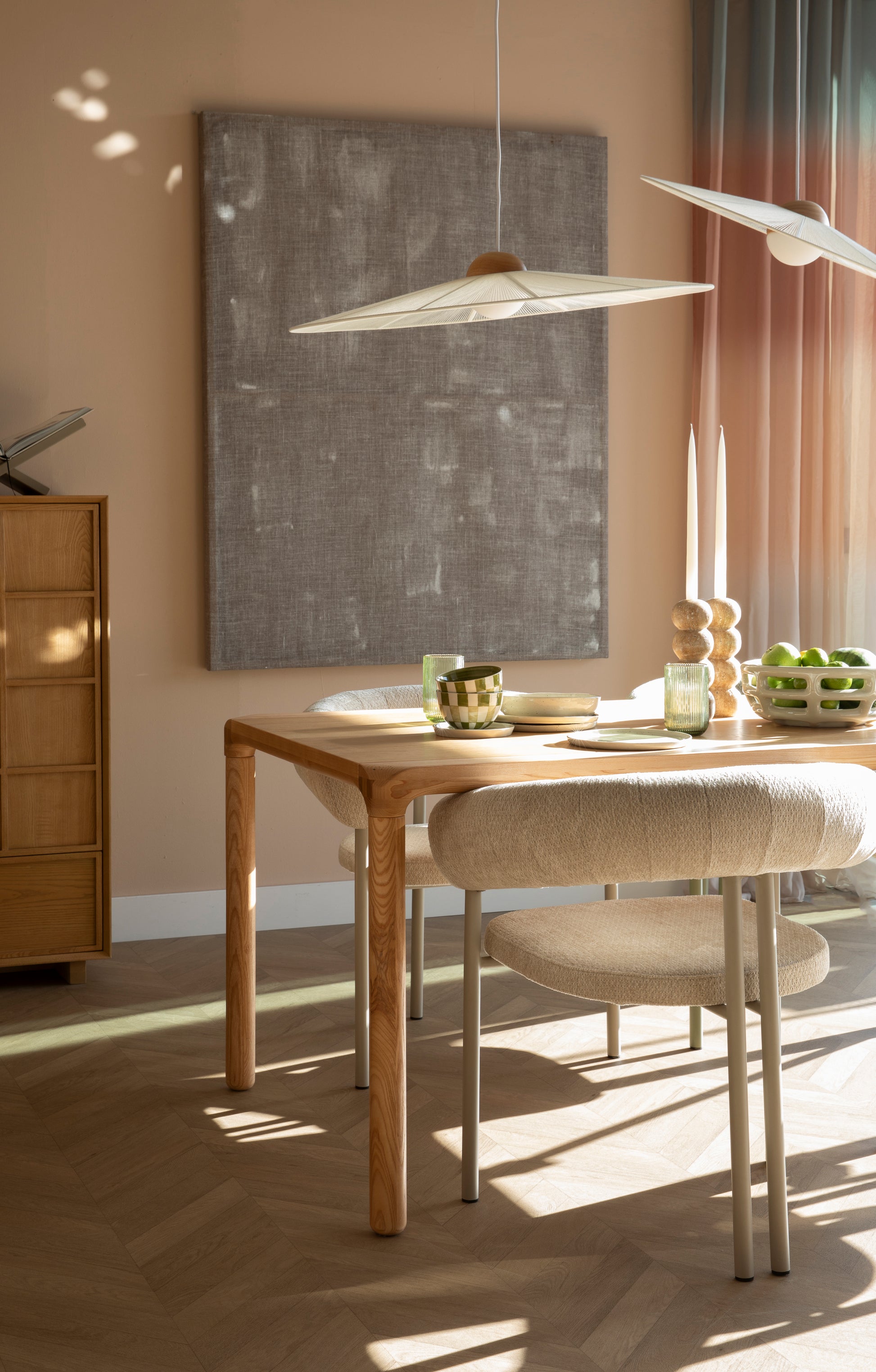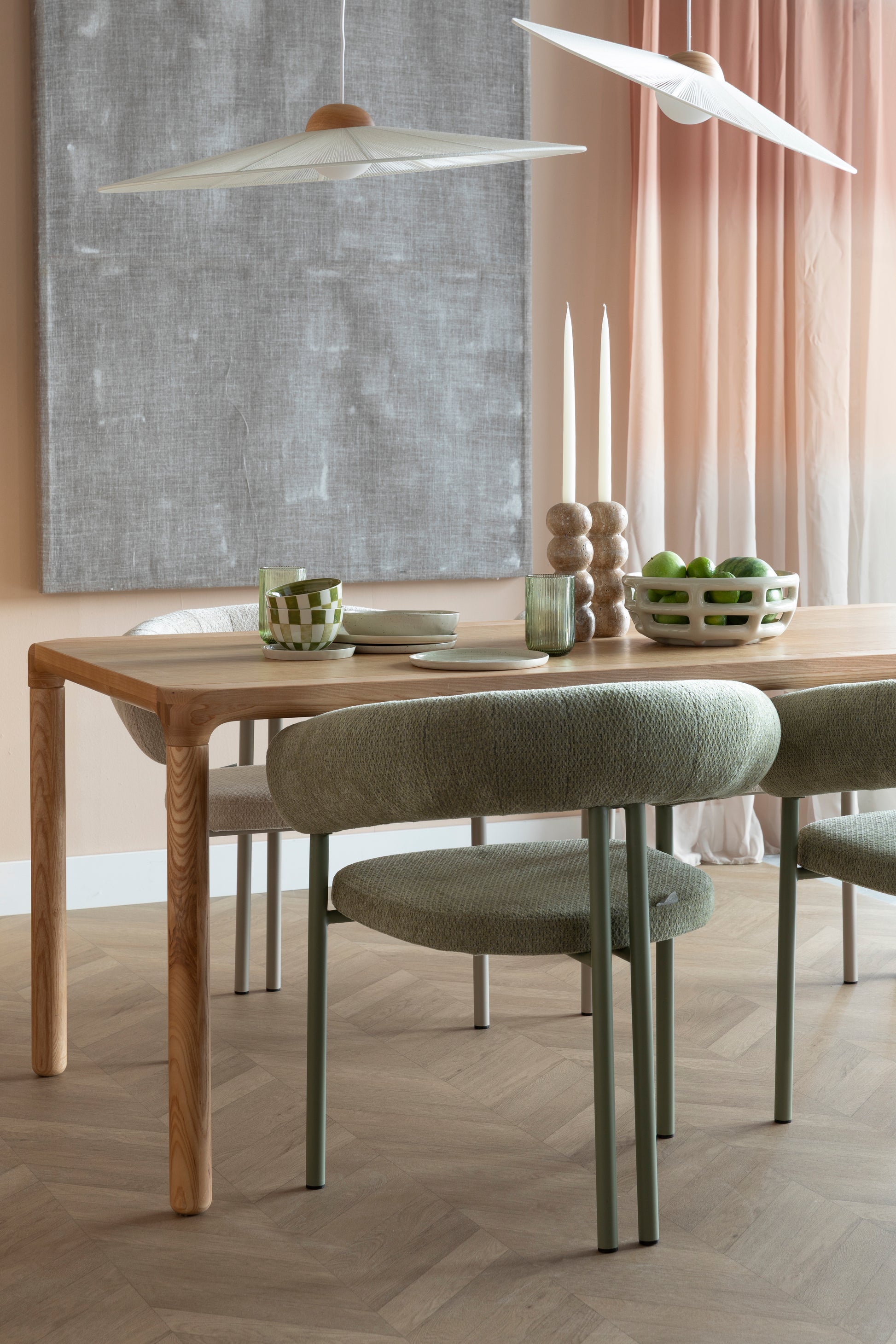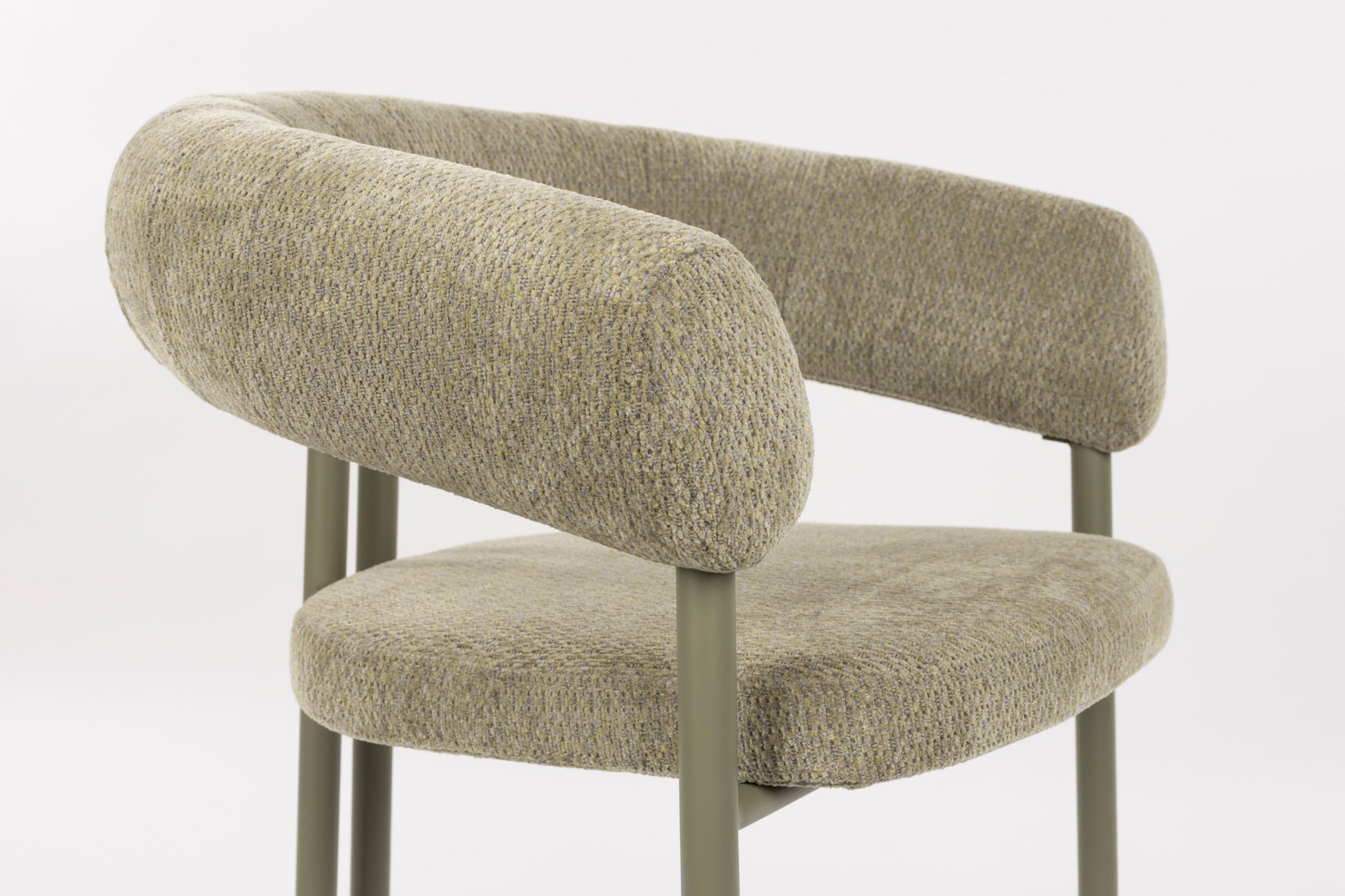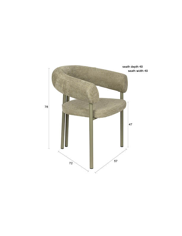 Kėdė „Heels“ kviečia prisėsti, nes tiesiog neįmanoma jai atsispirti. Atlošas ir porankiai sklandžiai susilieja tarpusavyje, sudarydami minkštą pusapskritimį, kuris apgaubia tarsi švelnus apkabinimas. Jaukų įspūdį sustiprina šaltų atspalvių minkšti, malonūs liesti apmušalai. Metalinis pagrindas nudažytas tuo pačiu gaiviu tonu, o glaudžiai išdėstytos galinės kojelės suteikia žaismingumo.