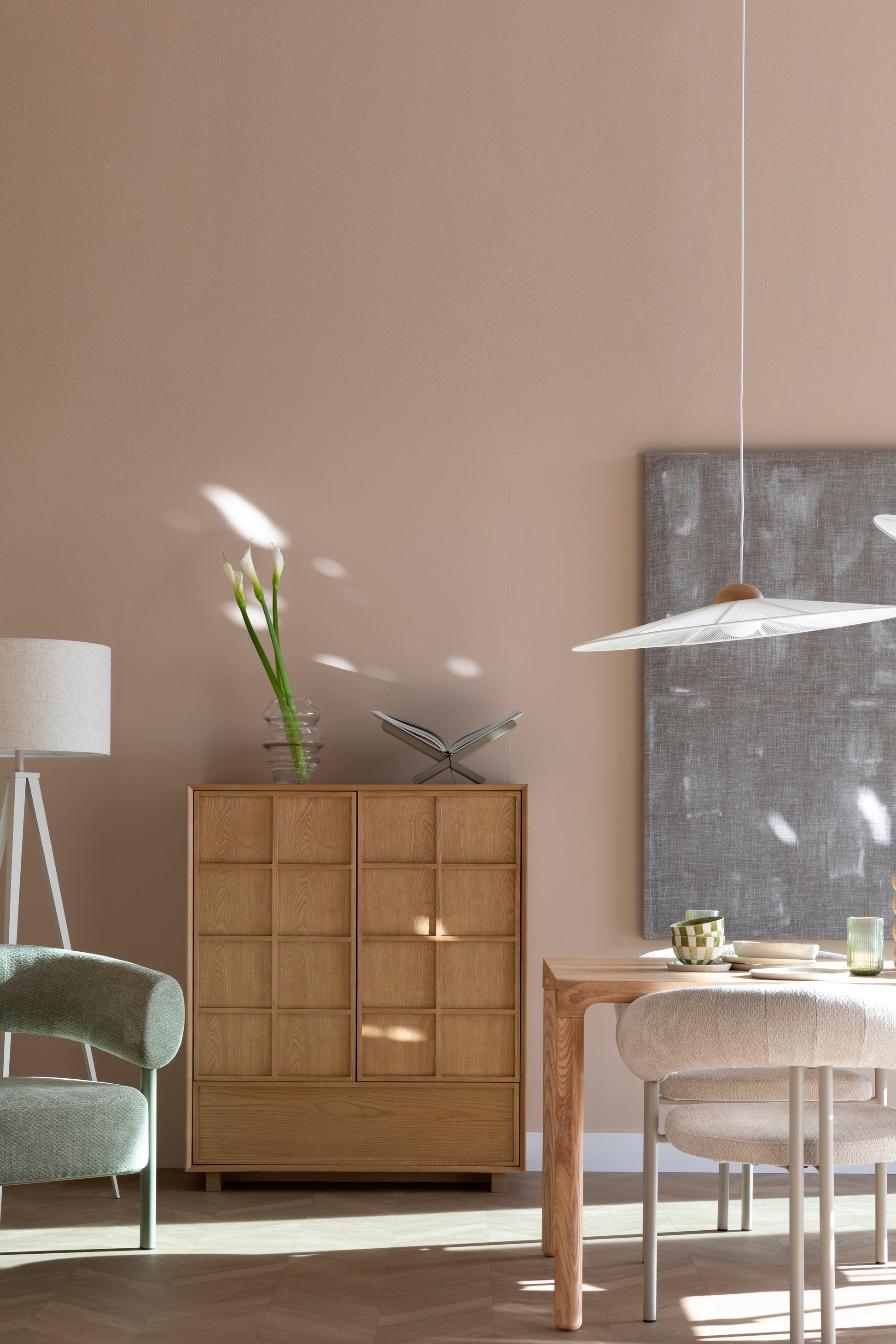 Ramybė ir harmonija – tai, kas apibūdina išskirtines „Raster“ serijos komodas. Pavadinimas nurodo medines lenteles, kurios stalčiuose ir durelėse sudaro rombo formos raštą, sukuriantį gražų šviesos ir šešėlio žaismą. Tiesios kojelės šiek tiek pakelia spintelę nuo grindų ir suteikia jai išvaizdą, primenančią japonišką meistrystę, derinamą su skandinavišku aiškumu. Nepakeičiamas elementas tvarkingam „Japandi“ interjerui.